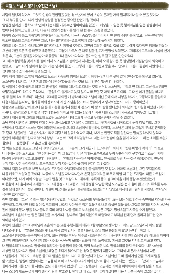 Home > 해동율맥 > 서문과 시봉기 > 묵담노스님 시봉기(수진큰스님)